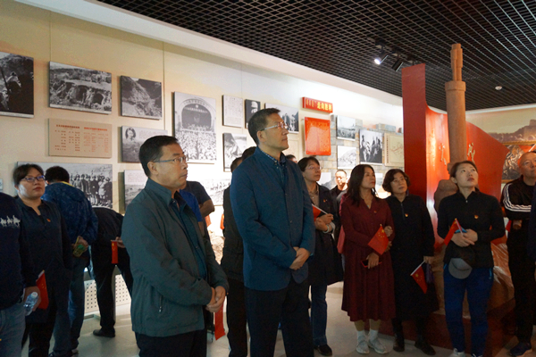 為深入推進“不忘初心、牢記使命”主題教育,在舉國上下普天同慶偉大祖國70華誕之際,2019年9月30日,我院黨委組織全體處級干部,赴涼城縣賀龍革命活動舊址、綏蒙革命紀念園,開展“牢記初心使命,感受紅色記憶”主題黨日活動,深切緬懷革命先烈的英雄業(yè)績,重溫厚重的紅色文化,進一步鑄牢愛國主義理想信念。學院黨委書記孫智憑,院長柴金義,常務副院長董平,副院長孫恒、武鈞參加。