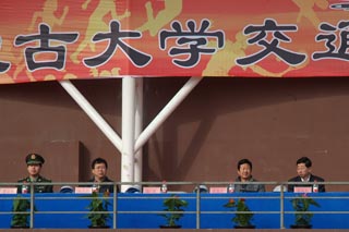 中國人民解放軍陸軍預備役步兵第三十師營長石道遠(右圖左二),內(nèi)蒙古玉泉區(qū)人民武裝部軍事參謀菅曉峰中尉(左圖左一),內(nèi)蒙古大學黨政辦公室副主任溫毅剛(左圖右一),內(nèi)蒙古大學體育教育部副部長王文杰(左圖右二),黨委副書記、紀委書記白托婭(右圖左一),副院長武鈞(右圖右二),黨委委員、科研處處長李宏教授(右圖右一),黨委委員、教務處處長趙志蒙教授(左圖左二) | |