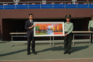 學(xué)院領(lǐng)導(dǎo)向玉泉區(qū)人民武裝部贈送牌匾 |