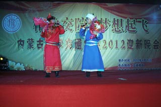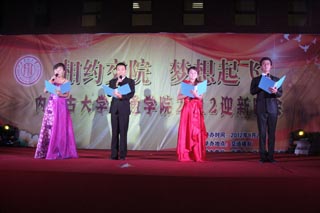 學(xué)院院長柴金義,常務(wù)副院長董平,黨委副書記、紀(jì)委書記白托婭,副院長孫恒、武鈞,黨委委員、科研處處長李宏,黨委委員、教務(wù)處處長趙志蒙出席晚會(huì)。學(xué)院各系、各處室負(fù)責(zé)人,班主任、新生等1500余人觀看了晚會(huì)。