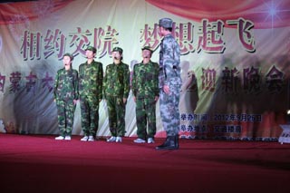 姿態(tài)曼妙的頂碗舞拉開了晚會(huì)序幕,場面盛大的晚會(huì)以歌曲《我的未來不是夢(mèng)》《站起來》,詩朗誦《獻(xiàn)給2012的學(xué)子》,舞蹈《kill the beats》,小品《軍訓(xùn)小趣》表現(xiàn)了“等待,夢(mèng)想的花開”的主題;以歌曲《想你的夜》,樂器演奏《軍港之夜》,舞蹈《碧波孔雀》,歌曲《護(hù)花使者》,舞蹈《kiss fire》表現(xiàn)了“舞動(dòng),美麗的青春”的主題;以歌曲《我的父親是牧馬人》,小品《推銷》,街舞《舞動(dòng)青春》,相聲《姑娘小伙別這樣》表現(xiàn)了“譜寫,騰飛的贊歌”的主題,晚會(huì)在軍樂團(tuán)的演奏、學(xué)生聯(lián)合會(huì)合唱的《走向復(fù)興》《中國,中國,鮮紅的太陽永不落》圓滿落下了帷幕。眾多的優(yōu)秀節(jié)目,讓大家感受到了青春澎湃的力量,給2012級(jí)新生留下了美好的回憶。同學(xué)們的表演精彩紛呈,觀眾掌聲熱烈,兩個(gè)小時(shí)的晚會(huì)始終洋溢著熱烈祥和的氛圍。