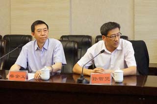 內(nèi)蒙古大學(xué)交通學(xué)院黨委書(shū)記孫智憑(右)、院長(zhǎng)柴金義(左) |