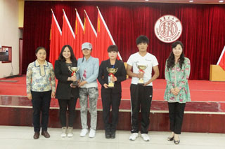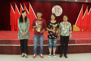 白托婭書記和馮俊杰老師為在制作心理健康宣傳展板和“和諧校園,健康心靈”征文中獲獎的單位和個人頒獎。