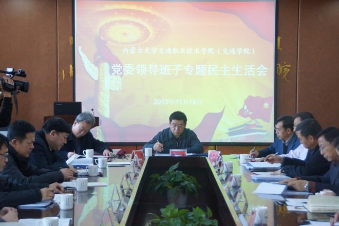 2013年11月18日下午、19日上午,內(nèi)蒙古大學(xué)交通學(xué)院黨委利用兩個(gè)半天時(shí)間召開(kāi)黨的群眾路線(xiàn)教育實(shí)踐活動(dòng)專(zhuān)題民主生活會(huì),按照“照鏡子、正衣冠、洗洗澡、治治病”的總要求,會(huì)議緊密聯(lián)系黨委班子成員思想、工作實(shí)際進(jìn)行對(duì)照檢查,以整風(fēng)精神開(kāi)展批評(píng)與自我批評(píng),深刻剖析“四風(fēng)”問(wèn)題產(chǎn)生的根源,明確提出整改的思路和具體措施。