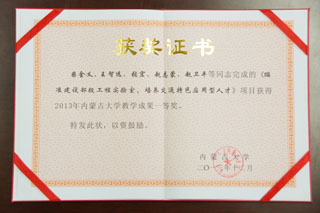 我院以柴金義院長牽頭,王智遠副教授、張宏副教授、趙志蒙教授與趙衛(wèi)平教授為主要參加人的《瞄準建設(shè)部級工程實驗室,培養(yǎng)交通特色應(yīng)用型人才》教學(xué)成果榮獲學(xué)校授予的校級教學(xué)成果獎一等獎。并在2014年9月11號內(nèi)蒙古大學(xué)召開2014年本科教學(xué)工作會議上頒發(fā)了獲獎證書。