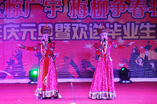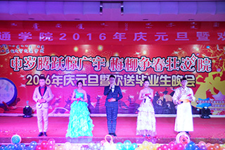 柴金義院長(zhǎng)致新年賀詞 領(lǐng)導(dǎo)與晚會(huì)演職人員合影 左為常務(wù)副院長(zhǎng)董平,右為副院長(zhǎng)武鈞 右為黨委副書記、紀(jì)委書記白托婭,左為黨委委員趙志蒙 開場(chǎng)舞《蒙古族舞蹈:賽白努》 晚會(huì)主持人 部門領(lǐng)導(dǎo)、系部領(lǐng)導(dǎo)及學(xué)工辦主任、班主任 教師們傾情表演《歌曲串燒》 歌伴舞表演《曹操》 魔術(shù)表演 歌曲《站在草原望北京》 歌曲《漫步人生路之夜來(lái)香》 舞蹈《up down & shake it》 朗誦《不悔夢(mèng)歸處 只恨太匆匆》 小品《我是演員》 相聲《我要畢業(yè)了》 動(dòng)感街舞表演 舞蹈《青春的告白》