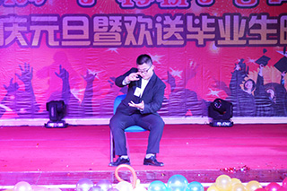 本場(chǎng)晚會(huì)共分三個(gè)篇章,主題突出,精彩紛呈。開場(chǎng)舞《賽拜努》、歌曲《站在草原望北京》、相聲《我要畢業(yè)了》、朗誦《不悔夢(mèng)歸處,只恨太匆匆》以及動(dòng)感的街舞無(wú)不昭示著青春的活力與留戀的追憶,由師生共同錄制的視頻《畢業(yè)獻(xiàn)詞》將晚會(huì)第一篇章“憶往昔,風(fēng)采依舊”推向高潮。歌曲《漫步人生路之夜來(lái)香》將晚會(huì)帶入第二篇章“望今日,風(fēng)華正茂”,神奇的魔術(shù)表演、悠揚(yáng)的蒙語(yǔ)歌曲《你美麗的眼神》、激情四射的舞蹈《Up down&Shake it》讓全場(chǎng)觀眾熱血沸騰。一曲《在我生命中的每一天》拉開第三篇章“展未來(lái),豪情必勝”,小品《我是演員》、舞蹈《青春的告白》、合唱《明天會(huì)更好》為畢業(yè)生們送上了美好祝福。晚會(huì)在老師們傾情奉獻(xiàn)的《歌曲串燒》中圓滿結(jié)束。