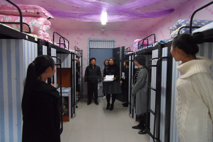 學工處學生管理科科長紀圖雅老師、機械工程系學工辦主任王奇?zhèn)ダ蠋?、道路工程系學工辦主任董小紅老師、工程管理系學工辦主任閆琴老師、汽車工程系學工辦主任姚延剛老師帶領(lǐng)汽車工程系學生會成員分成三組對參加的學生宿舍進行評選。